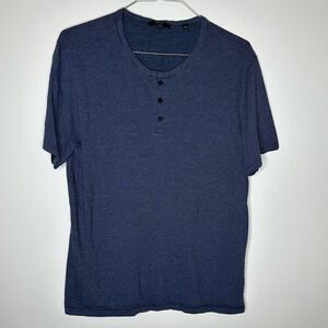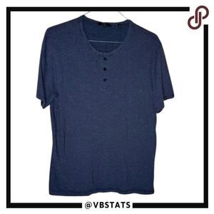 Vince. Large Navy Heather Short Sleeve Henley Shirt