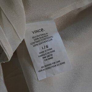 Vince. Laser cut Leather Paneled Silk Blouse Size Large