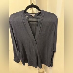 Vince Lead Gray Silk Half Placket Split Neck Long Sleeve Top Blouse Size Small