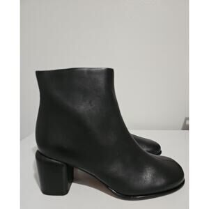 Vince Leather Boots Womens 6 Black Square Toe Block Heel Elevated Elegant