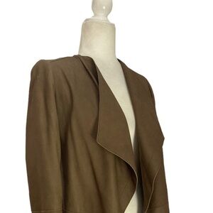 Vince Leather Jacket Draped Collar Open Front in Cocoa Brown