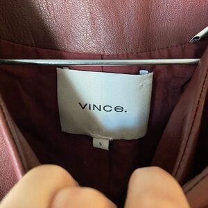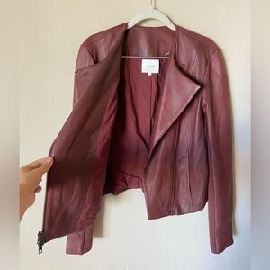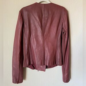 Vince Leather Moto Red Jacket Collarless Asymmetric Zip Size S