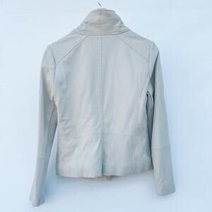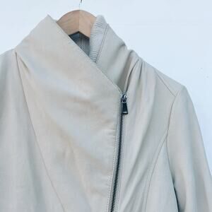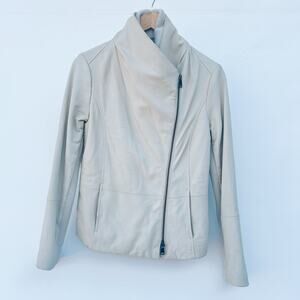 Vince Leather Ribbed Collar Scuba Asymmetrical Moto Biker Jacket Cream Medium