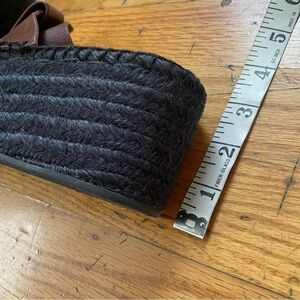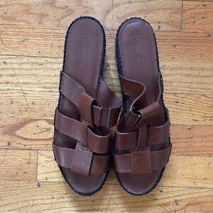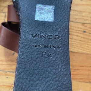 Elegant Vince sandals with brown leather straps. Features a sturdy black platform sole.