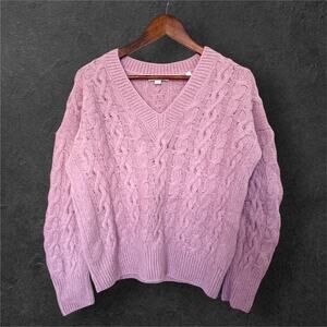Vince Lilac Alpaca Wool Cable Knit Sweater S/P – Soft Cozy V-Neck Pullover