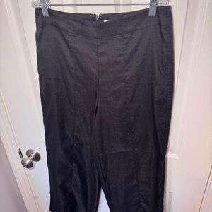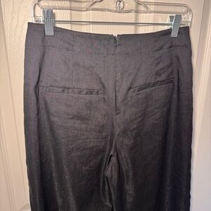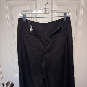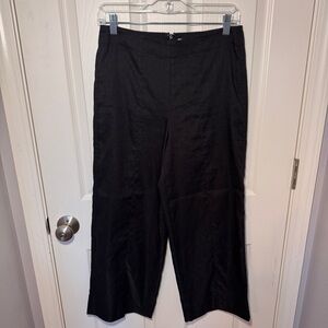 Black linen blend cropped wide leg pants from Vince. Back slip pockets. Zipper closure in back.