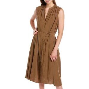 Vince Linen Blend Shirred Sleeveless A-Line Midi Dress Minimalist Brown Medium