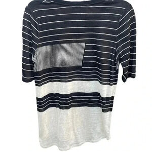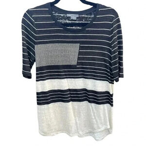 Vince linen striped and colorblock lightweight three quarter length sleeves