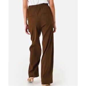 Vince Linen High Waist Pants Brown Pull On Pockets Women's Size XL