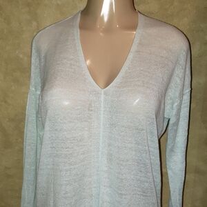 Vince Linen Vneck Light Blue Knit Top Size xs