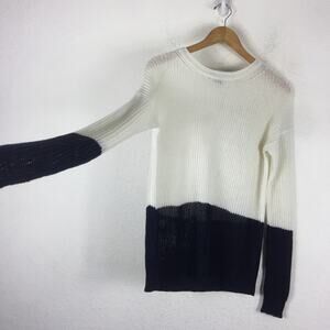 Vince Linen White Navy Colorblock Open Knit Oversized Sweater XS Fisherman