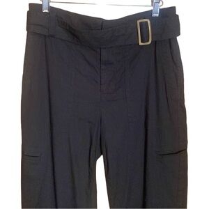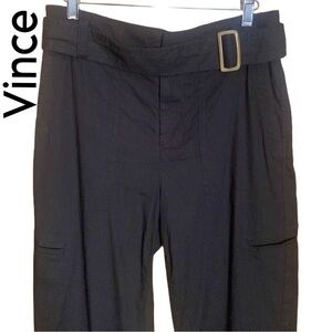 Vince Linen blend Belted half elastic high waist Pants in Black cuffed hem sz M