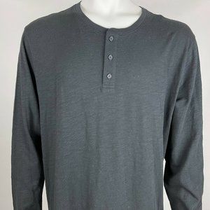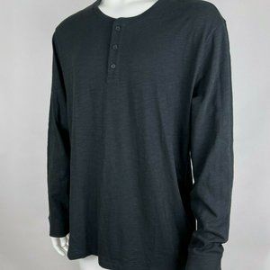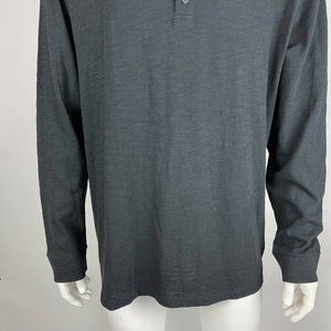 Vince Long Sleeve Henley Tee Shirt Cotton Crew Neck Stretch Top Black Mens XXL