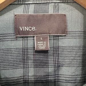 Vince Long Sleeve Lightweight Button-Down Shirt Blue Plaid Large