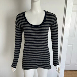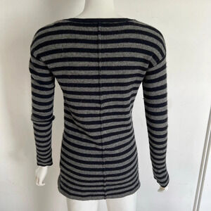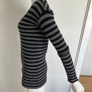 Vince Long Sleeve Striped Grey Navy Cashmere Round Neck Sweater Jumper Size S