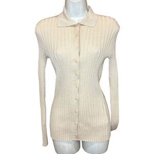 Vince Long Sleeved Ribbed Collar Cardigan in Milk Honey NWT Size Medium