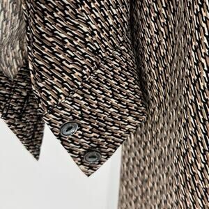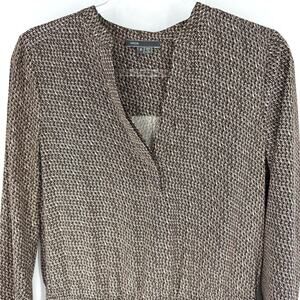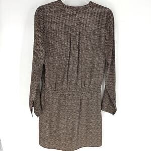 Vince Long-Sleeve Drop Waist Drawstring Silk Dress Black and Tan Pattern Size 6