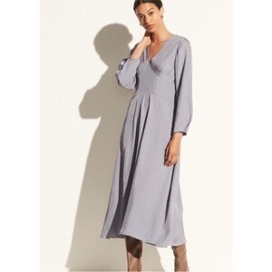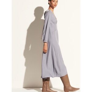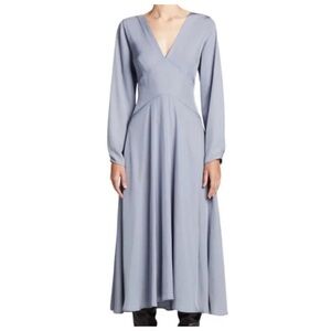 Vince Long-Sleeve Paneled V-Neck Dress Iris Blue NWT