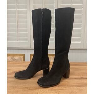 Vince Maggie Knee High Boots Black Suede Size 8 NWOB Riding Boots Round Toe