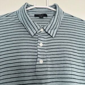 Vince Men’s 100% Linen Jonny Collar Polo Shirt Blue/Gray Stripe Size L #7