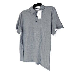 Vince Mens Blue White Double Layer Stripe Polo Shirt Sz M NWT