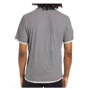 Vince Mens Blue Striped Layered Short Sleeve Collared Button Polo Shirt Sz M New