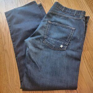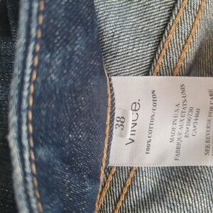 These Vince Men's Dark Wash Jeans in size 38 offer a sophisticated look with a comfortable fit, suitable for various casual settings.