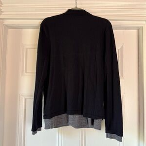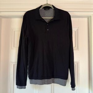 Vince Men's Merino Wool Double Layer Polo Sweater Navy Blue Grey Large