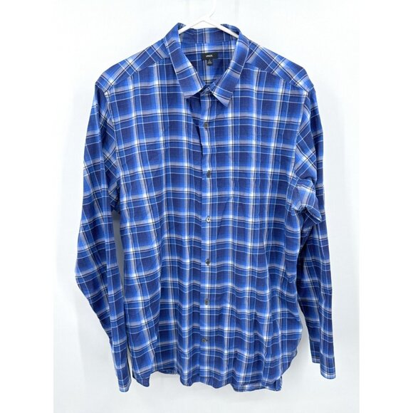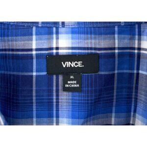 Vince Mens Plaid Blue Button Front Shirt Sz XL