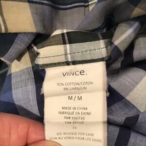 Vince Men's Plaid Linen Blend Button Down Shirt Sz M