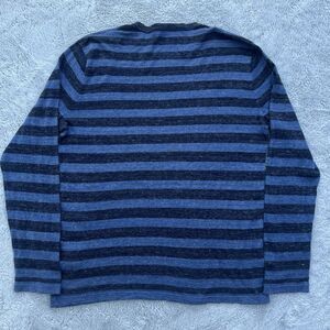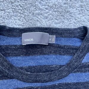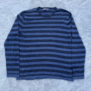Vince Men’s Striped Long Sleeve Crew Shirt Cotton Cashmere Wool Blue Gray XL