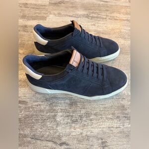 Vince Mercer Slip-On Sneaker Blue and Tan Suede/Leathsr Classic Low-Top Design