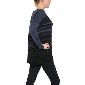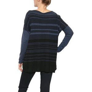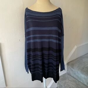 Vince Merino Wool Blend Ink Blue Variegated Stripe Boatneck Sweater Size XS