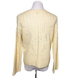 Vince Merino Wool Cashmere Blend Open Cable Knit Crew Sweater Pale Yellow Small