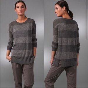 Gorgeous cashmere blend sweater from Vince. Gray and silver horizontal stripes. Tunic length. Excellent condition