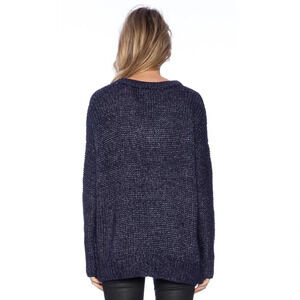 Tags: casual, everyday, designer, luxury, rib, knit, knitted, knitwear, comfy, lounge, loungewear, fall, autumn, winter, pullover, jumper, basic, layering, soft, cozy, loose, wool, wool blend, silk blend, navy blue, dark