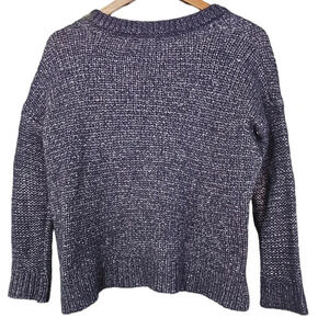 Vince Metallic Textured V-Neck Sweater Navy Size S