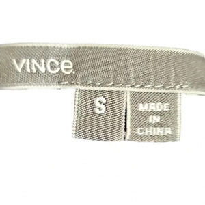 Vince Metallic Textured V-Neck Sweater in Navy. Size S / Small. Features V-neck, long sleeves, silver metallic texture, ribbed trims, side slits, pullover style, and wool silk blend fabric. Style V2335 75789. 62% Wool, 38% Silk. Excellent pre-owned condition, no flaws.