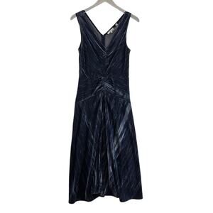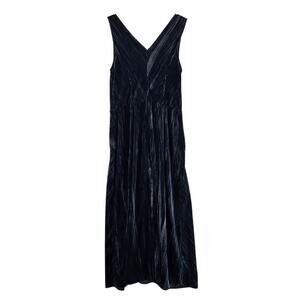 * Vince Ruched Slate Blue Crushed Velvet Sleevless V-Neck Midi Dress