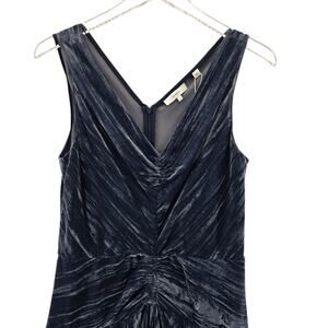 Vince Midi Dress Womens 6 Small NEW Ruched Slate Blue Crushed Velvet Sleeveless