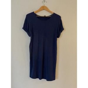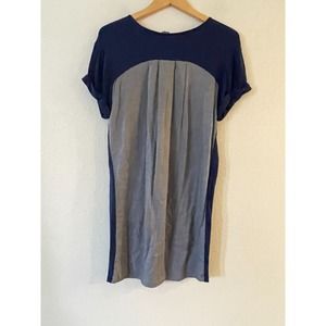 Vince Mixed Media Chambray Back Mini T-Shirt Dress Size XXS Colorblock Blue Gray
