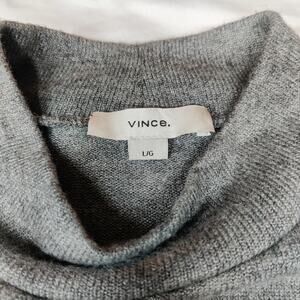 Vince long sleeve mock neck knit sweater dress in gray, women's size large.