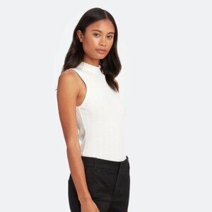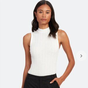Ribbed, super stretchy and comfortable. Tank top with mock neck and no sleeves.