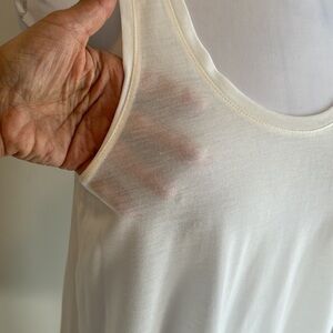 Lightweight, semi sheer scoop neck tank with silk contrast trim.