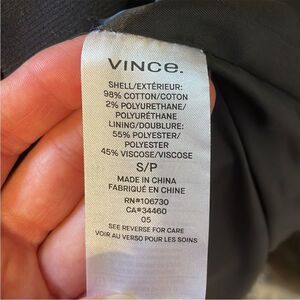 Features long sleeves, snap button front closure, drawstring hem, slash pockets, button cuffs, interior pocket, spread collar, ribbed textured cotton blend, fully lined, in dark navy blue