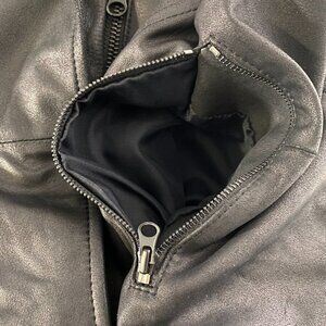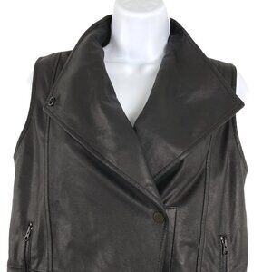 Vince Moto Vest Jacket Leather Black Solid Zip Women's XS Flawed