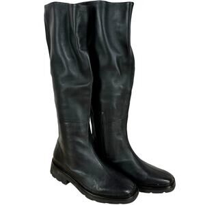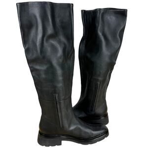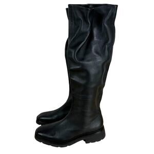 Vince NWOB Rune Slouch Leather Knee High Black Boots Size 8.5M Thick Lug Soles