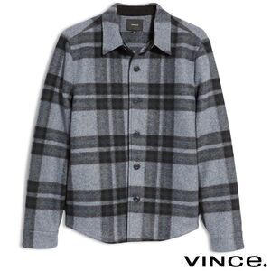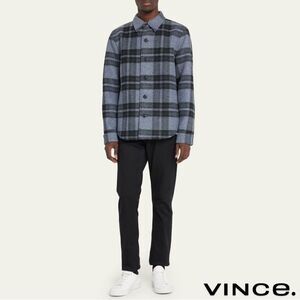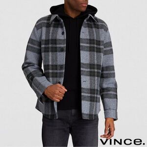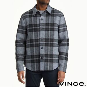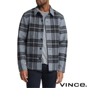 Vince **NWT** Heavy Knit Brushed Flannel Plaid Shirt Jacket in Heather Blue