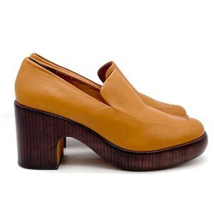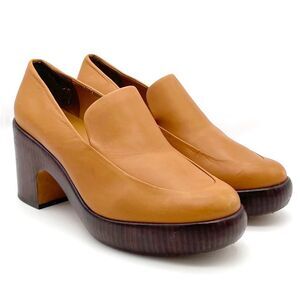 Vince Narissa High Heel Platform Clog Loafers in Cognac Tan Leather Size 8.5