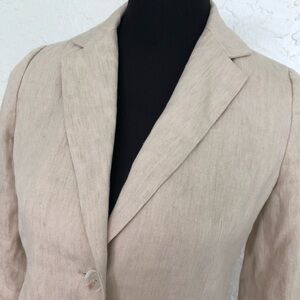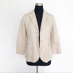 Vince Blazer Jacket Linen Cropped Sleeve Tan Natural Beige